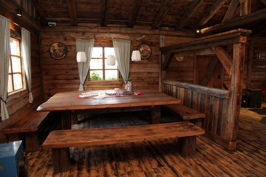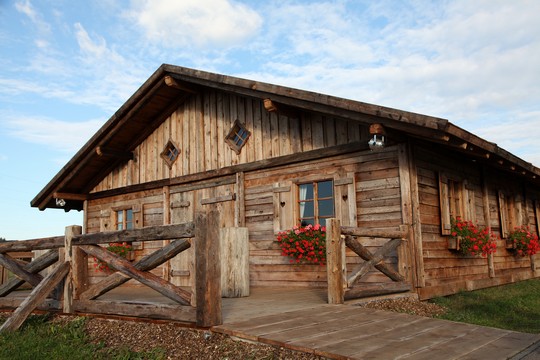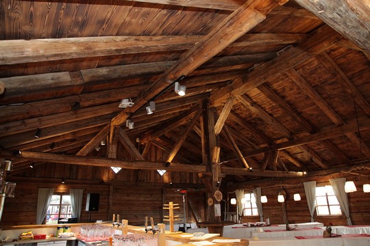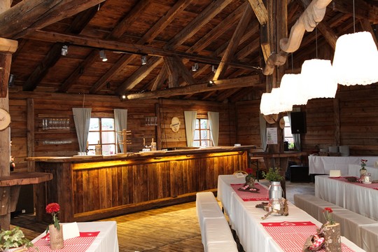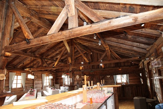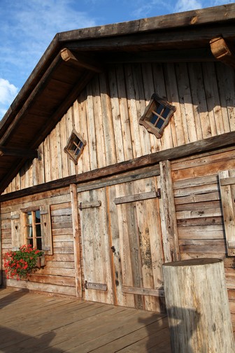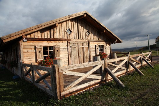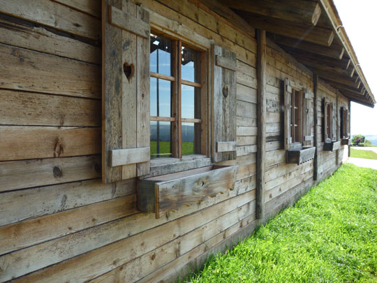 Hier eine von uns in Altholz gefertigte Almhütte in der Größe von 10x15m.